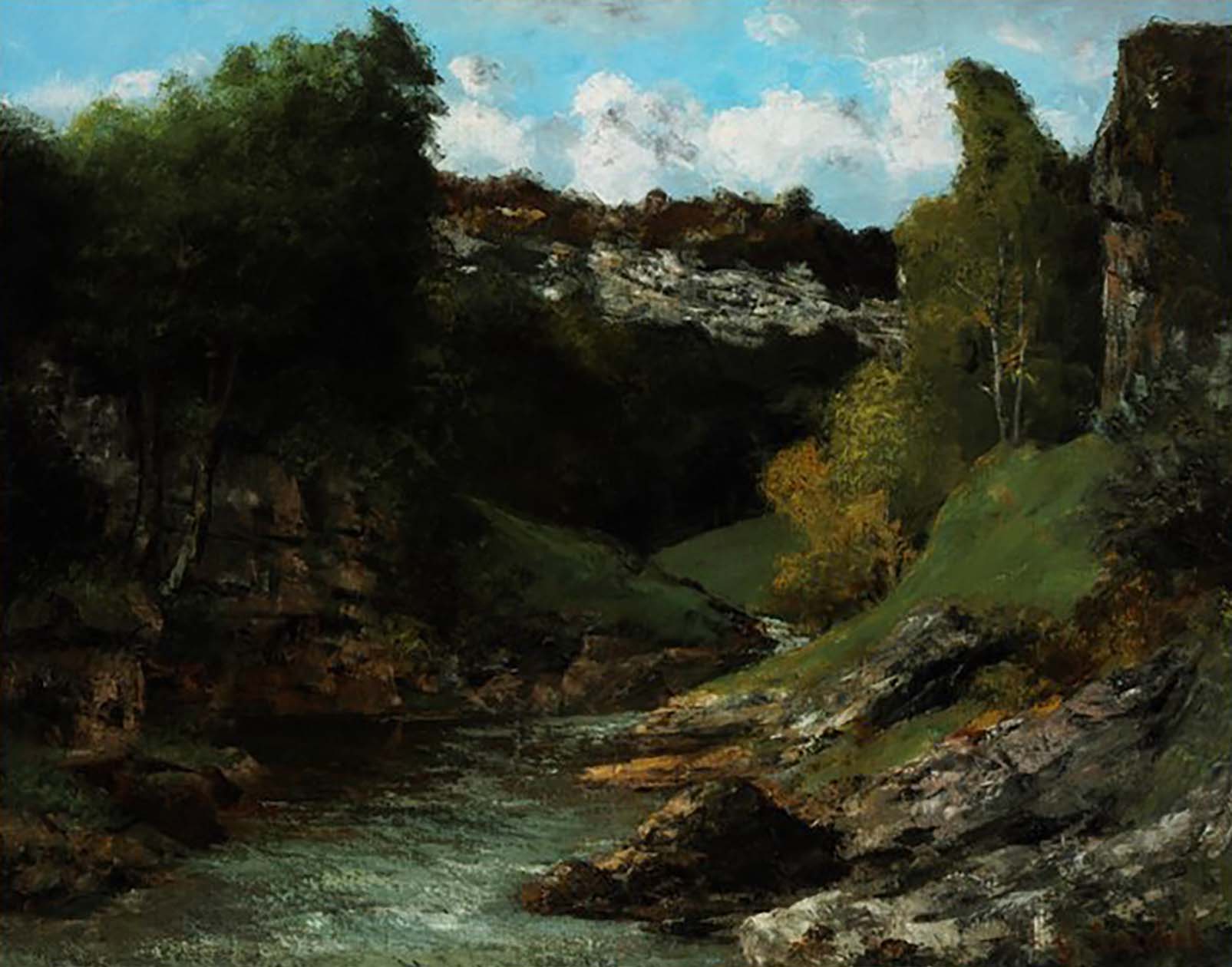 Mais c’est avec Courbet que ce locus amoenus s’affirmera véritablement comme trou au monde. Arbres et rochers absorbent le reste de lumière, l’œil s’engouffre vers le néant. Le visible se perd dans l’opacité de la peinture. Le trou n’est plus au dedans de la nature, en son cœur. Il produit et génère son propre espace qui absorbe ce qui l’entoure.